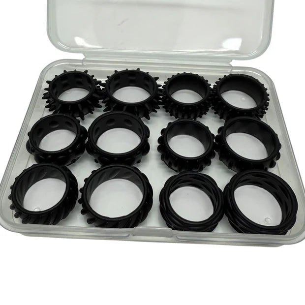 They are typically positioned on the upper segment of the finger or thumb, allowing for discreet tactile engagement and fidgeting. Each of the textured bands comes in two sizes. Designed include: Flexible soft spikes,  small bristle like bumps, tyre tread, dots, lateral bumps and diagonal bumps.
