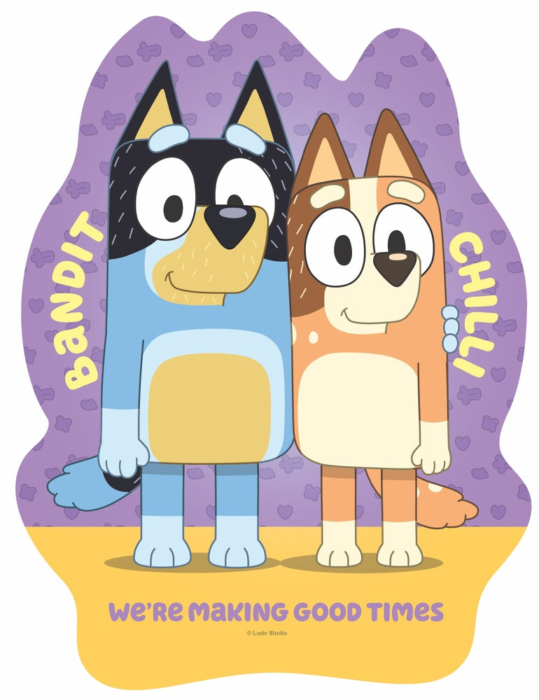 • Piece together these four fun large shaped jigsaw puzzles featuring Bluey, Bingo, Bandit and Chilli.