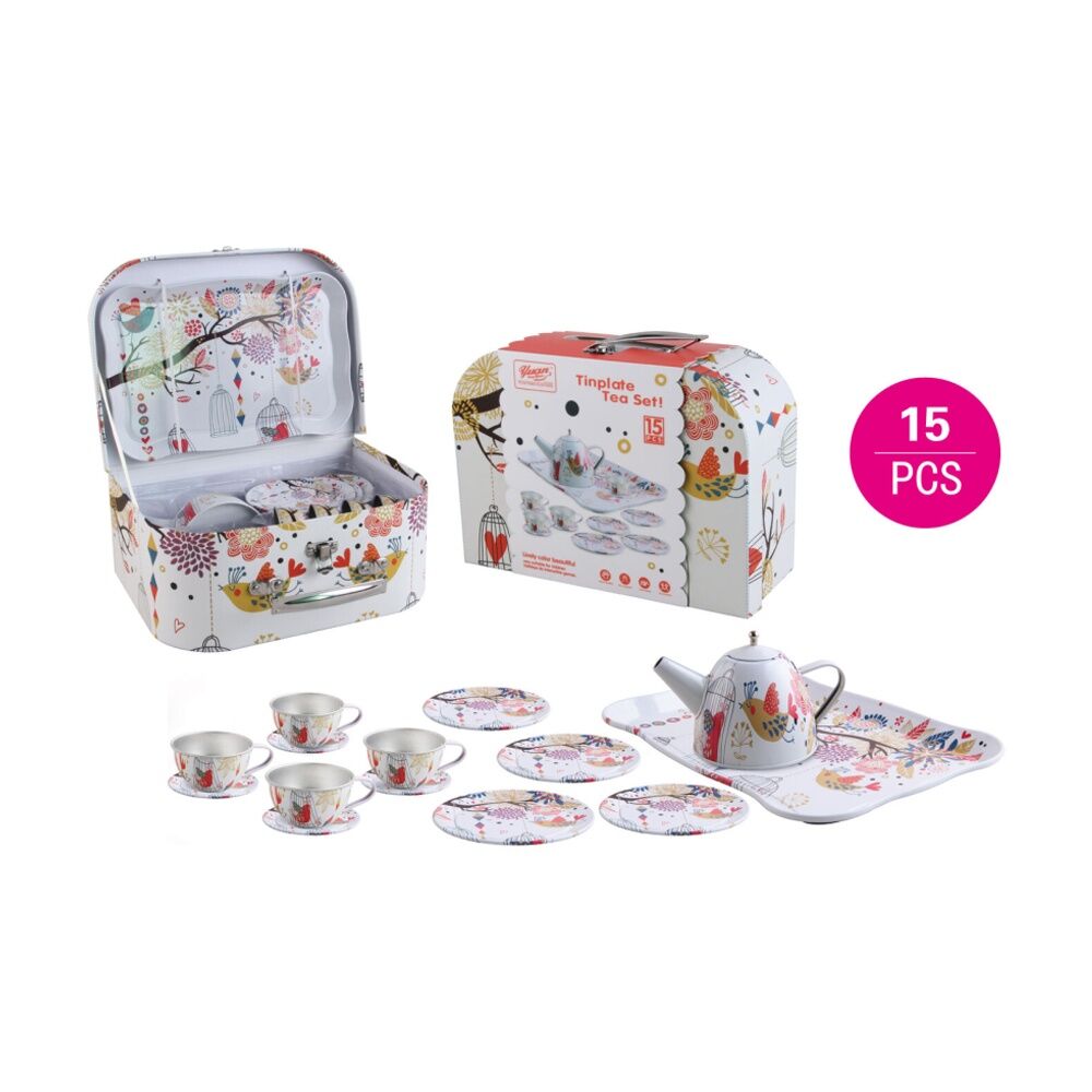 TINPLATE METAL TEA SET 15 PIECES - ASSORTED DESIGNS