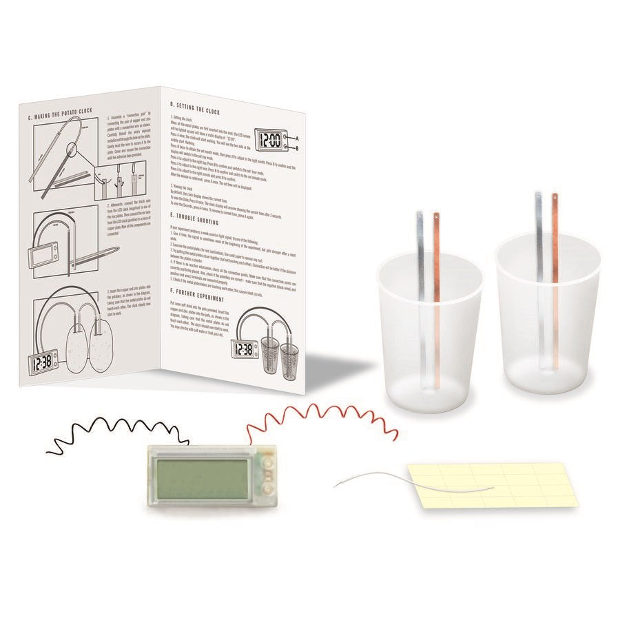 Discover how to power a digital clock using potatoes—no batteries required. Experiment with other materials and explore the science of clean energy. Perfect for curious minds aged 8 and up.Award-winning educational kitFor Ages 8yrs+Package Dimensions (cm): H: 22 W: 17 L: 6